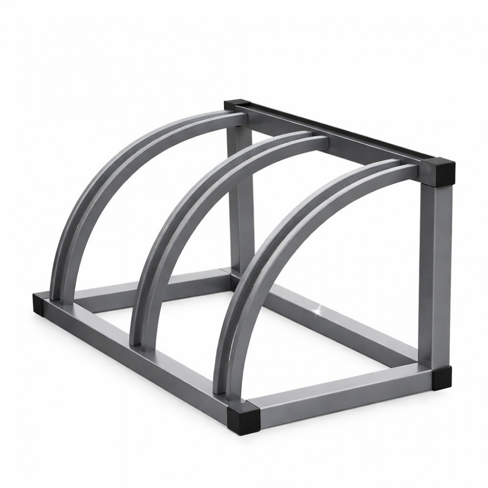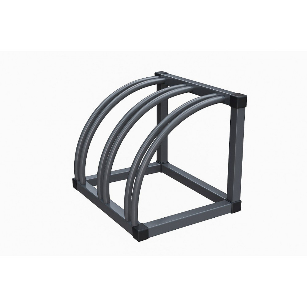 Закруглённая велопарковка легко устанавливается, предоставляет 3 посадочных места для велосипедов и является отличным дополнением к любому общественному или жилому пространству.